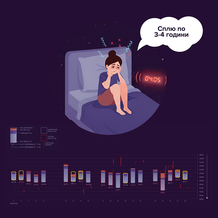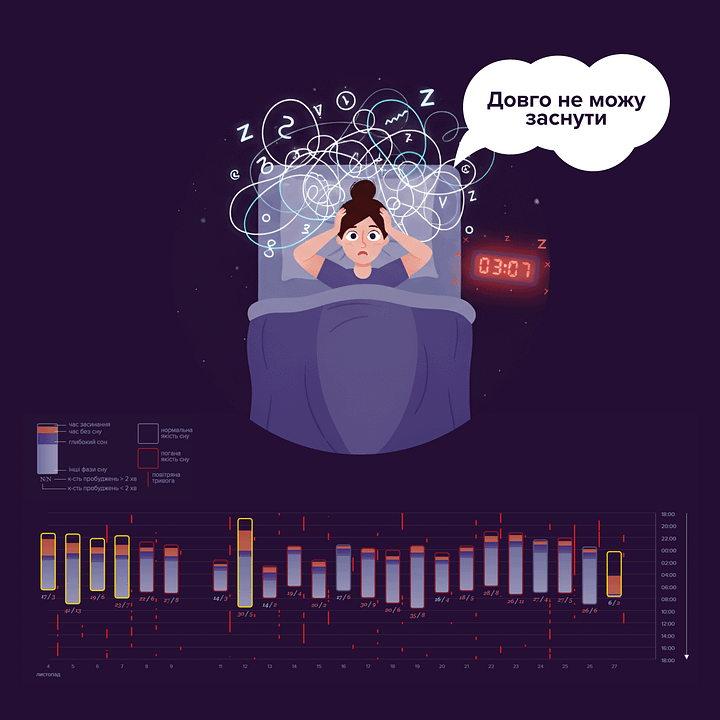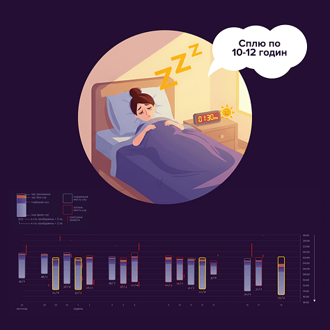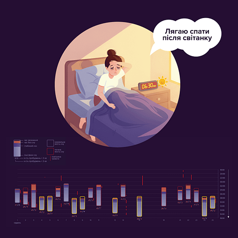 Наша артдиректорка Надя Кельм створила серію додаткових візуалізацій до проєкту «1358 ночей недосипу. Як війна спричиняє безсоння цивільних». Ми розповідали про нього минулої розсилки — якщо не бачили, дуже радимо.